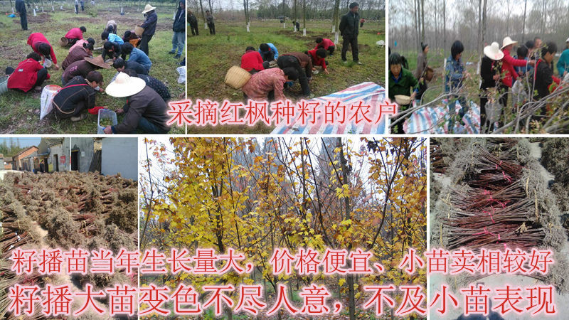 • 华石红枫基地附近的许多农户正以采摘本公司的种子进行播种繁殖。有的采用籽播苗的枝条进行扦插繁殖。特别是在苗长大后,秋色表现堪忧。