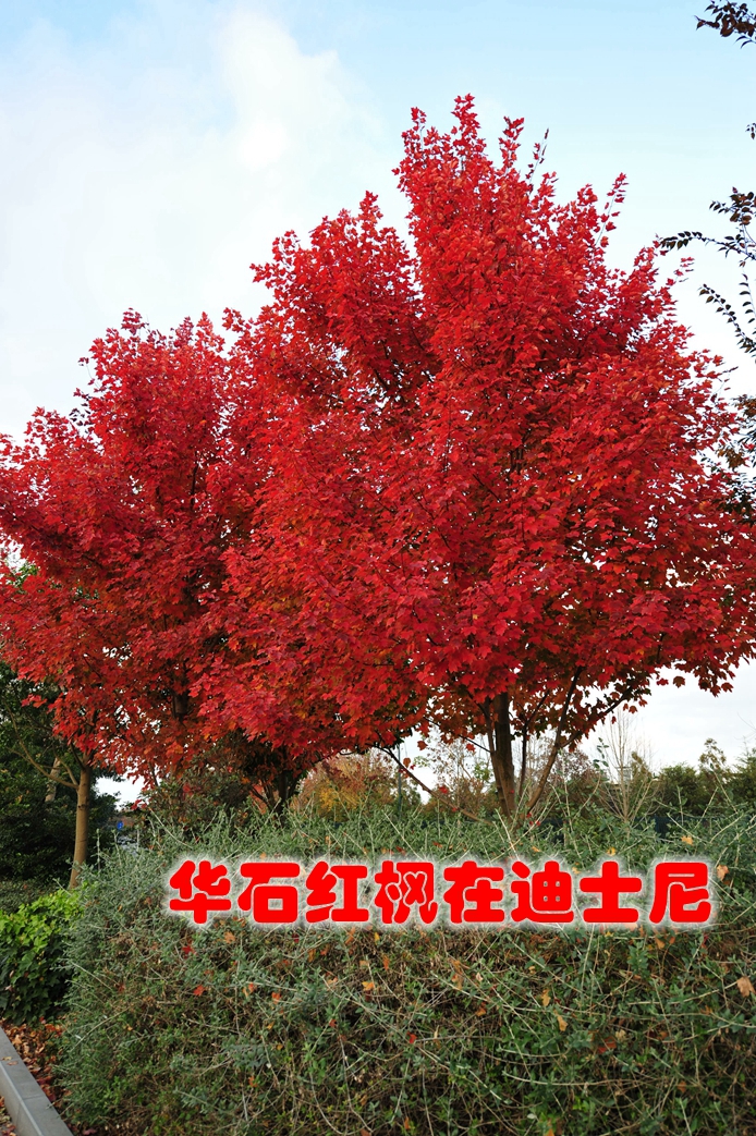 华石红枫以其美丽的红叶,丰满的树冠和优美的树姿赢得了迪士尼公司的肯定,从2012年开始,大量的大规格华石红枫进入园区扎根,将在开园时用五彩缤纷的彩叶呈现在游客面前。