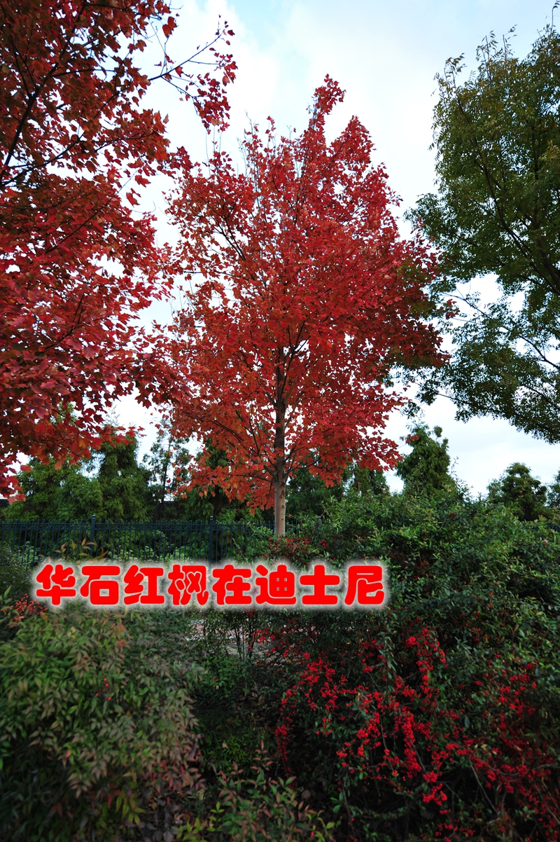 华石红枫以其美丽的红叶,丰满的树冠和优美的树姿赢得了迪士尼公司的肯定,从2012年开始,大量的大规格华石红枫进入园区扎根,将在开园时用五彩缤纷的彩叶呈现在游客面前。
