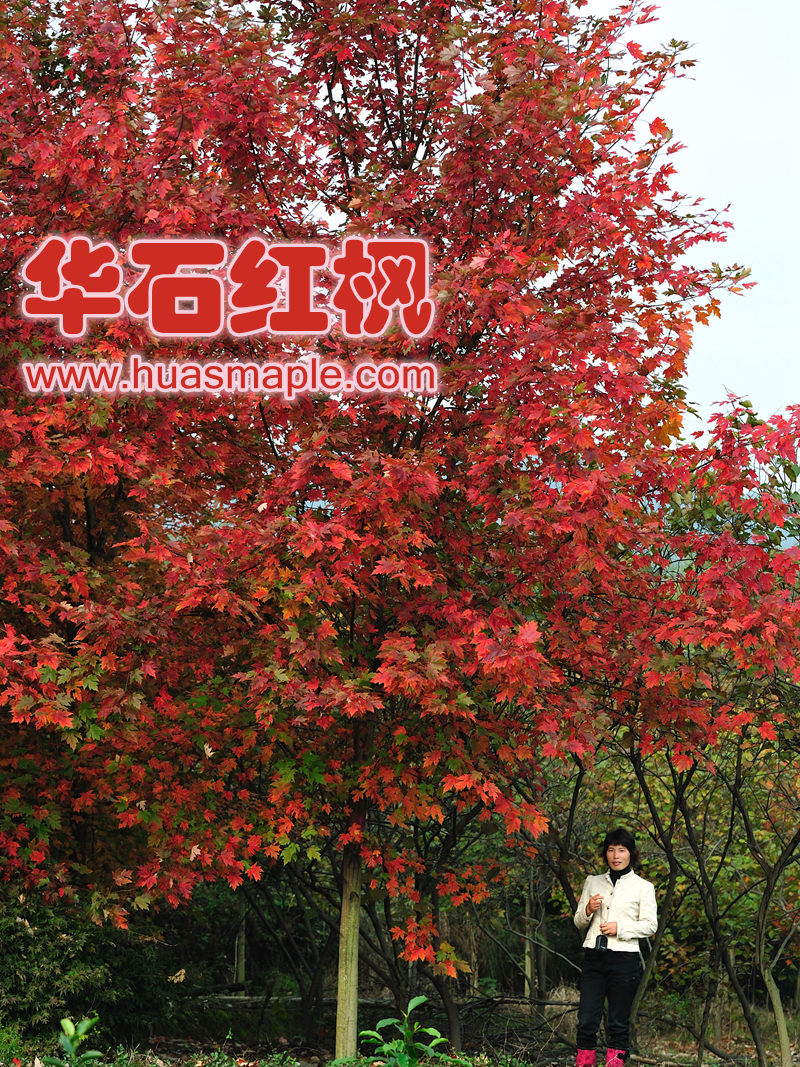 秋火焰是华石红枫推广的第一个园艺栽培红枫品种,小苗变色效果震撼,很快被公众认同,填补了国内红叶大型乔木的空白。